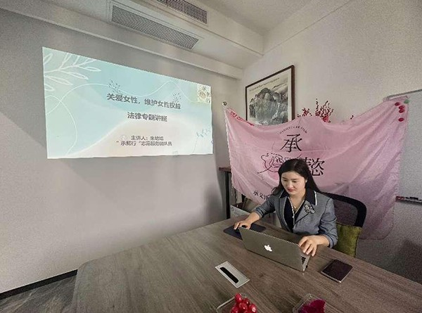 妇女擎起半边天,在第113个国际三八妇女节(我国第100个妇女节)来临之际,为庆祝三八妇女节,关爱女性,提高女性在家庭和职场中自我法律保护意识,2023年3月7日,本所“承懿行”巾帼志愿团朱培培律师受邀为合肥诚客优服信息咨询有限公司女职工做法律教育专题讲座。