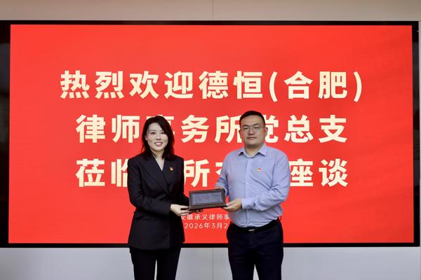 3月27日,北京德恒(合肥)律师事务所党总支书记张本意,党总支副书记吴丹,党总支纪检委员、妇联主席付晓艳,党总支宣传委员、第一党支部书记田多雨,党总支组织委员荣庆文,党务专员汪若缘一行莅临安徽承义律师事务所开展党建工作交流活动。本所党总支书记丁俊、统战委员朱学润、宣传委员胡应国、第一党支部宣传委员徐林、妇联委员朱培培热情接待并参与座谈。
