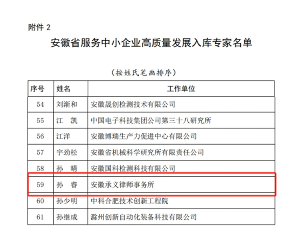 高级合伙人孙睿获评安徽省服务中小企业高质量发展专家