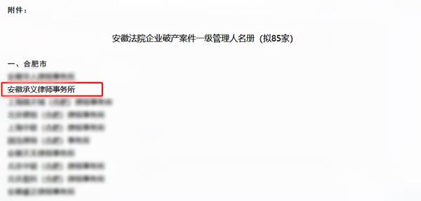 本所入选安徽法院企业破产案件一级管理人名册